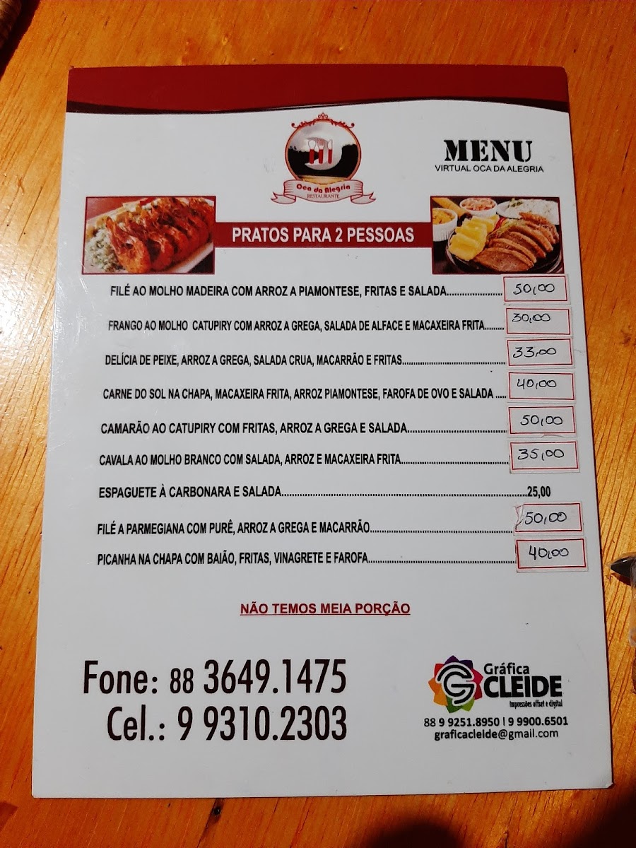 At Restaurante Oca Da Alegria, the menu presents a delightful array of traditional Brazilian flavors, perfect for both casual diners and those seeking a deeper culinary experience. The restaurant offers a variety of refreshing beverages, such as Cerveja, an ideal choice for pairing with the rich flavors of their main dishes. For those in the mood for something with a bit more zest, the Caipirinha is a standout, delivering a perfect balance of sweetness and tang. The menu caters to a broad range of tastes, from hearty meat dishes to lighter, more vibrant options. Each plate is crafted with care, showcasing the restaurant's dedication to fresh, quality ingredients. Whether you're enjoying a relaxing meal or celebrating a special occasion, the drink selections and dishes at Restaurante Oca Da Alegria promise to elevate any dining experience.